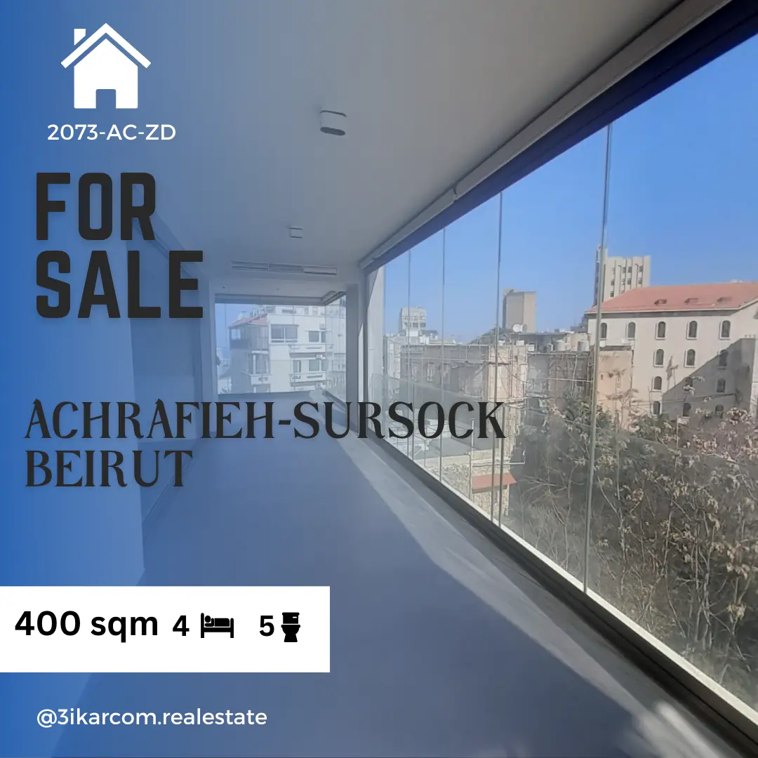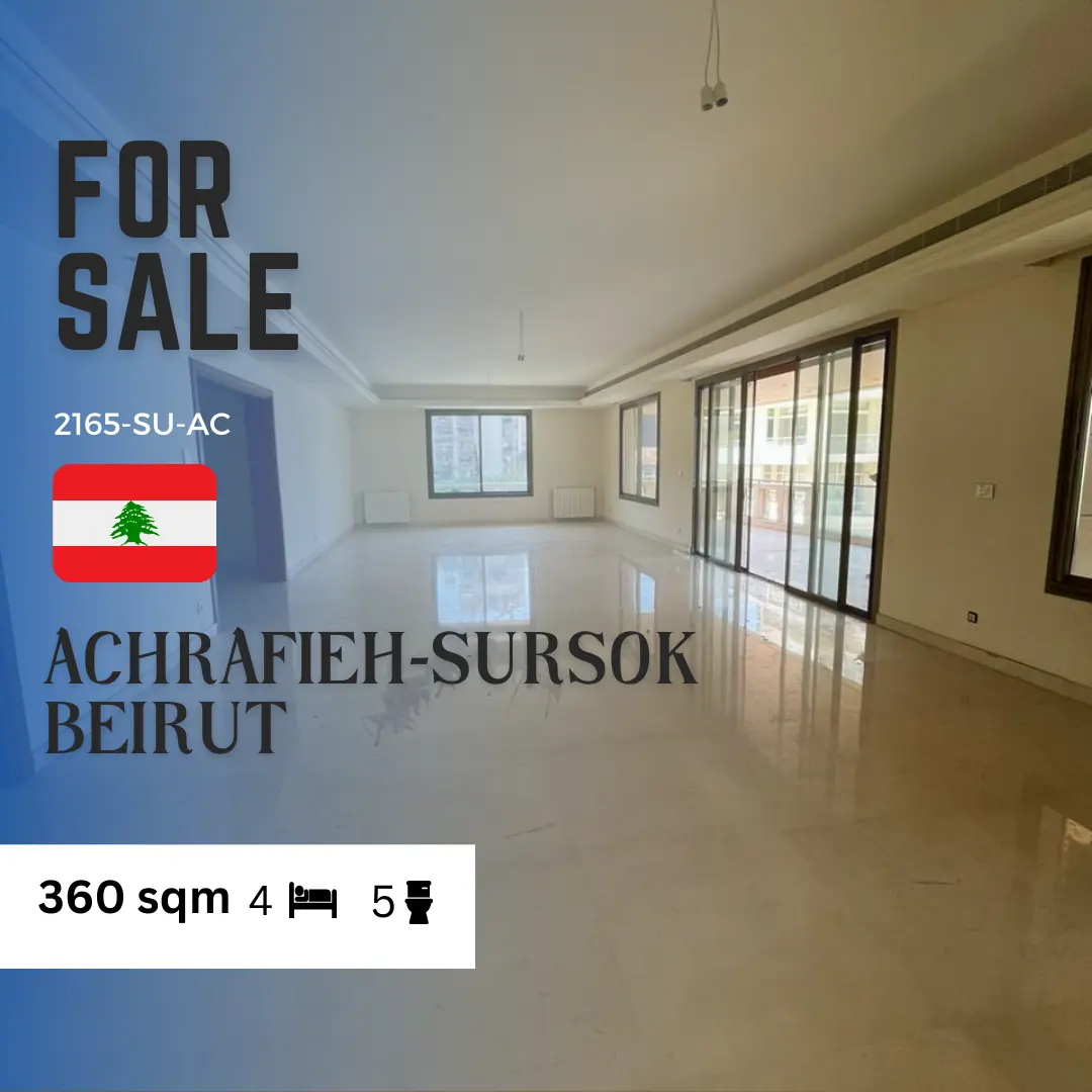360 sqm Apartment for sale in Sursock floor 4 , prime location 3 Master bedrooms | 1 Regular bedroom 4 bathrooms | Kitchen | Maid room + bathroom Dining room | Living room | Large balcony Storage room | 2 parking Price : 1,600,000$2165-SU-AC
