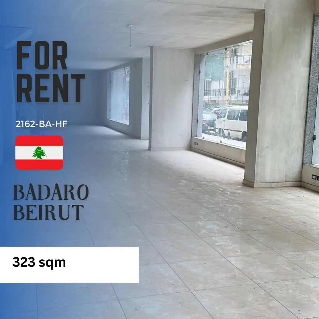 323 sqm shop for rent in Badaro prime location210 sqm ground floor 113 sqm mezzanine 8 parkingPrice :5,000 $ per month2162-BA-HFمحل تجاري بمساحة 323 متر مربع للإيجار في بدارو موقع مميزطابق ارضي 210 متر ميزانين 113 متر مربع 8 مواقف سيارات السعر : 5000 دولار شهريا