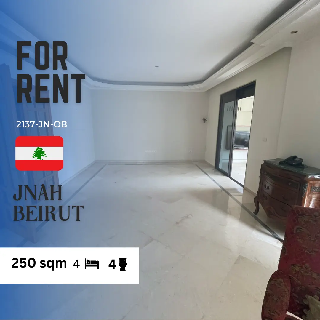250 sqm Apartment for rent in Jnah 1 master bedroom | 3 regular bedrooms 3 bathrooms | Kitchen Maid room + bathroom | Dining room Living room | Closed balcony Storage room | 2 parking Price: 1000$ per month2137-JN-OBشقة 250 متر للإيجار في الجناح 1 غرفة نوم رئيسية | 3 غرف نوم عادية 3 حمامات | مطبخ غر