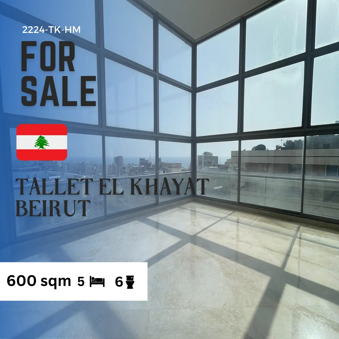 600 sqm Duplex for sale in Tallet el khayat new building and prime location High end finishing 5 master bedrooms | 6 bathrooms | Kitchen | Dining room 2 living room | Laundry room | Tv room Maid room + bathroom | 2 elevators | 24/7 electricity Camera surveillance | Sea view Storage room | Ac central