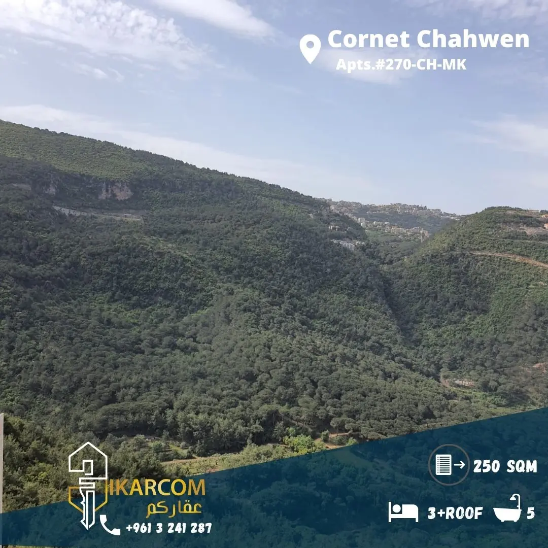Duplex for Sale in Cornet Chahwan| 4th FloorArea 350 sqm + Terrace | 3 Bedrooms+roof| 5 Bathrooms Living Room | 2 Parking | HVAC| Maid bedroom| Cave | View Panoramic Price: 250,000 $ cash