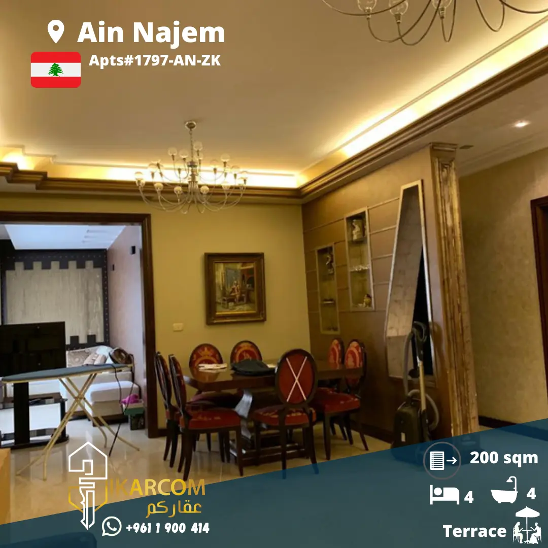 Amazing Duplex For Sale in AIN NAJEM Very close to the school | amazing view Fully furnished | Fully decorated 200 sqm ( 100 Sqm each floor ) each floor is a 2 bedrooms apartment with 2 bathrooms , salon + dining and a kitchen . private parking with visitors Very calm area Price: 199,000$دوبلكس رائع