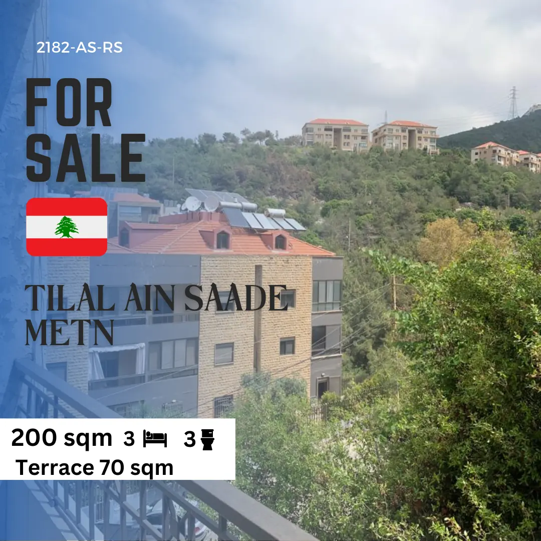 Apartment for sale in Tilal Ain Saade 175 sqm 3 bedrooms , 4 bathrooms maid room heating system mountain view 2 parkings 165,000$ cashشقة للبيع في تلال عين سعادة 175 متر مربع 3 غرف نوم، 4 حمامات غرفة الخادمة نظام التدفئة منظر الجبل 2 موقف سيارات 165,000 دولار Youtube Video Click here