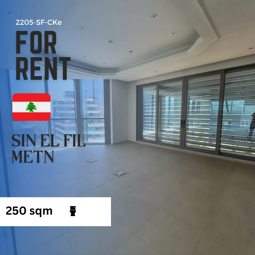 Office for rent near Habtour Sin el Fil 250 sqm Floor 9 : 250 sqm with kitchen and Bathrooms + AC central + 5 parking Price : 50,000 $ / year2205-SF-CKbمكتب للإيجار بالقرب من حبتور سن الفيل 250 متر الدور التاسع : 250 متر مربع بالمطبخ والحمامات + تكييف مركزي + 5 مواقف سيارات السعر : 50,000 دولار / س